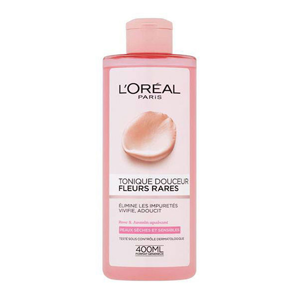 تونر لورآل حاوی گل رز و یاس آرامش بخش نرم کننده مرطوب کننده پاک کننده عمیق مواد آرایشی و آلودگی مناسب پوست نرمال و مختلط حجم محصول 400 میل