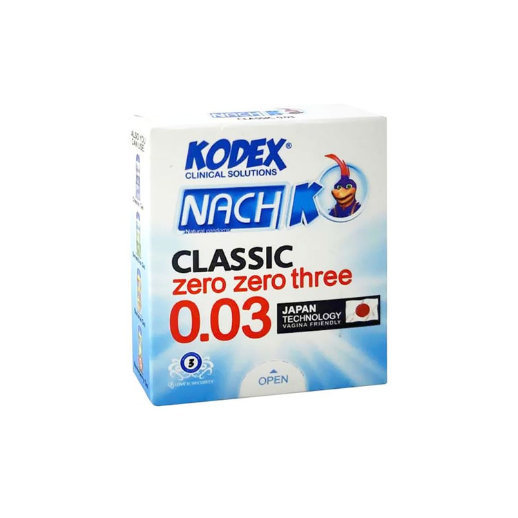 کاندوم نازک کلاسیک ناچ کدکس مدل Nach Kodex Classic 0.03 zero zero three از تکنولوژی خاص ژاپنی استفاده کرده است. این کاندوم تنها با ضخامت 30 میکرون معادل 0.03 میلی متر یکی از نازک ترین و مقاوم ترین کاندوم های لاتکس جهان است. علاوه بر این مزیت کاندوم نازک ناچ کدکس از لوبریکانت مخصوص کاندوم های نازک همراه با رایحه لذت بخش نیز بهره می برد.